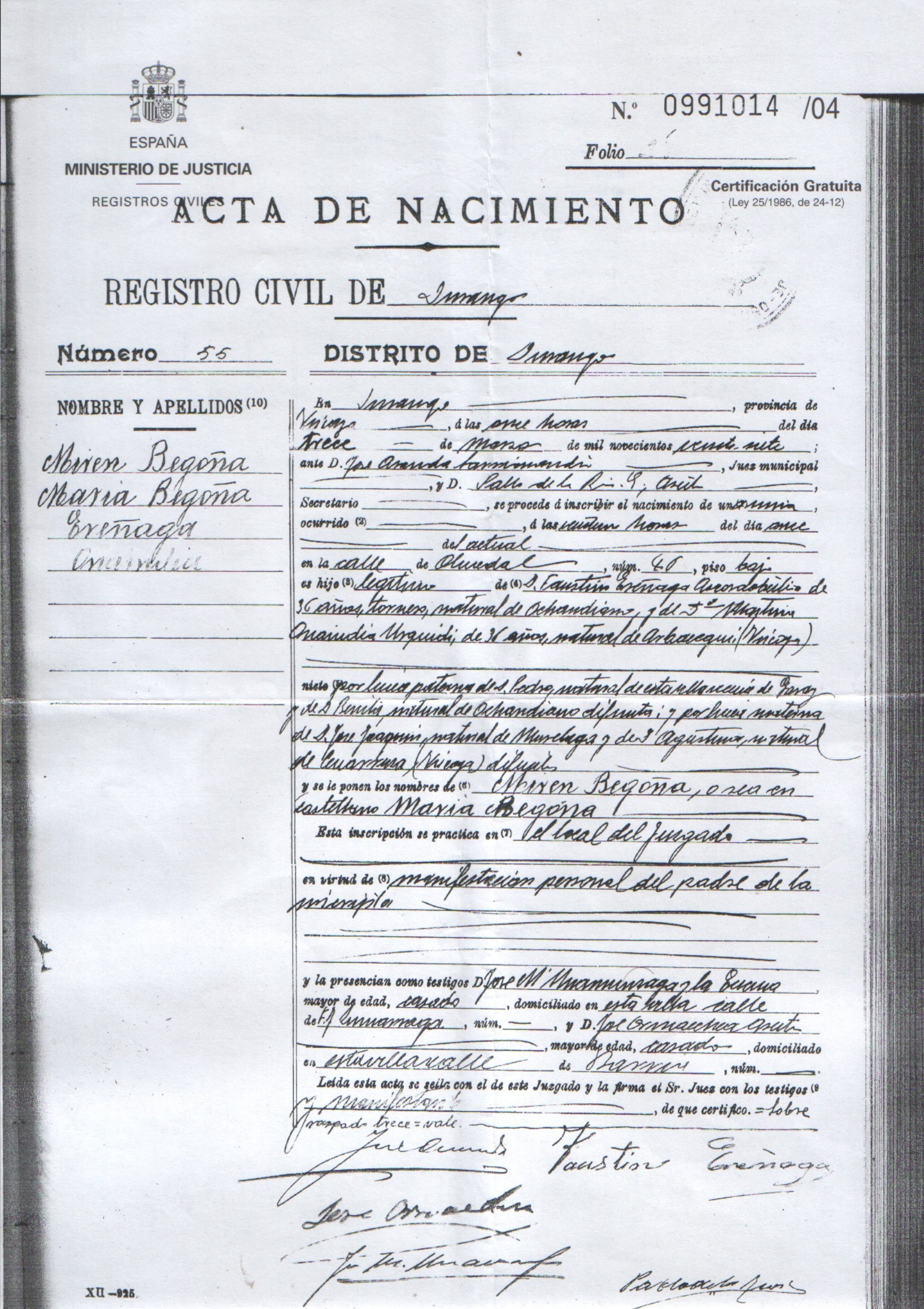 3. Begoña Ereñaga [Nacimiento] nació el 11 Marzo 1927 en Durango. [Padres]